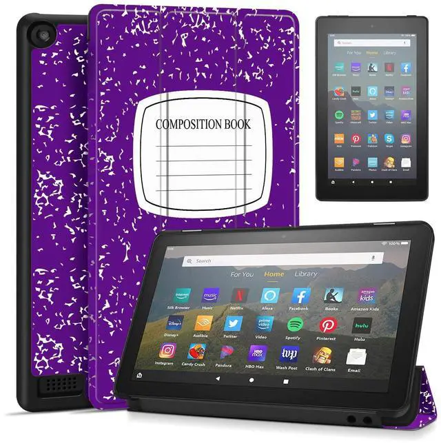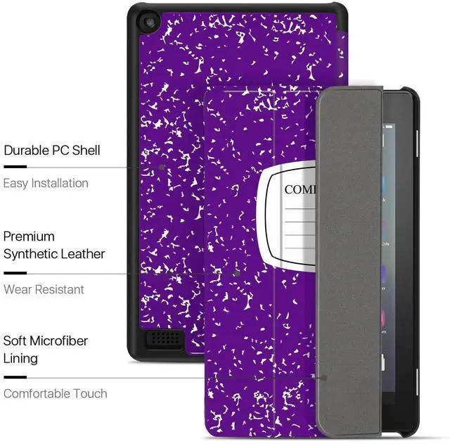 Package Content: 1x Case Cover for Kindle Fire 7 Tablet 9th & 7th Generation, Smart Slim PU Leather Protective Sleeve with Auto Sleep/Wake, Flip Stand f/ 7-Inch Display 2019 2017 Release Gen (Composition Book Purple)
