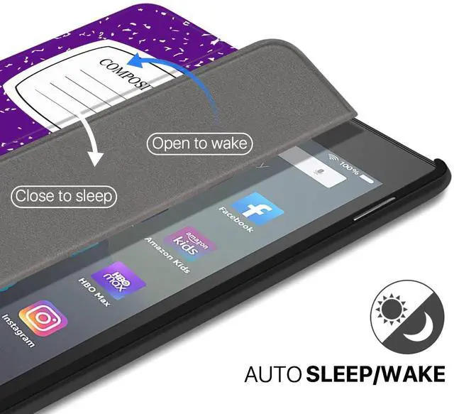 Slim, form-fitting cover with built-in stand allows for hands-free viewing in landscape orientations, perfectly fit your Fire 7 tablet (9th & 7th Generation, Release in 2019 & 2017), and provide full front and back protection. The cover is easy to securely attach, remove, and folds back for easy one-handed reading. It automatically puts your Fire 7 to sleep when closed and wakes upon opening, making it easy to jump back into your book. Made of durable synthetic leather, this case is designed to be lightweight and protective, protect your device from dust & sweat without adding unnecessary bulk, so you can hold it for hours of reading with minimal effort.