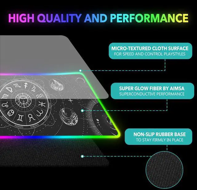 Chose AIMSA mouse pad will give your everything in you like. Our mouse pads designed with exquisite patterns and 14 Lighting Modes, it is not only an ordinary mouse pad, but also a good partner for your game.