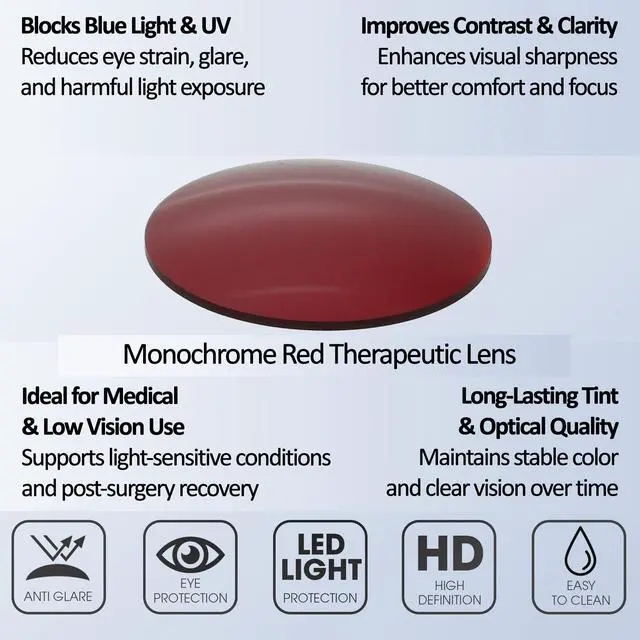 Monochrome Amber Brown Lenses: Specialized for red light therapy, enhances visuals & supports relaxation through precise wavelength transmission. Each lens type is designed to meet specific chromotherapy needs, making these glasses a versatile solution for glare reduction, mood enhancement, and light sensitivity management. Explore the harmony of function and therapy with our innovative eyewear. It comes with Medpspex Carrying Case and Cleaning Cloth