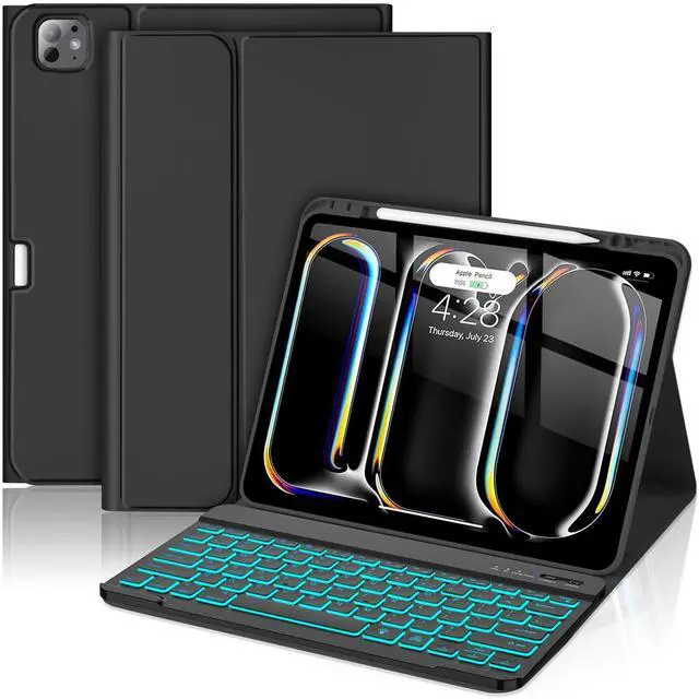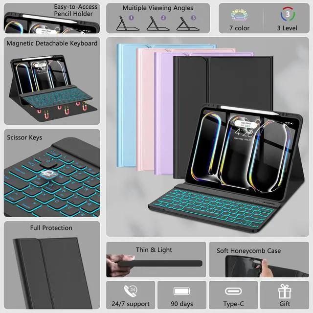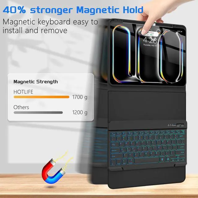 HOTLIFE for iPad Pro 13 Inch (M4) 2024 Case with Keyboard, Magnetic Detachable - 7 Color Backlit Keyboard Case for iPad Pro 13 (M4), Rechargeable Wireless Folio Keyboard Case with Pencil Holder