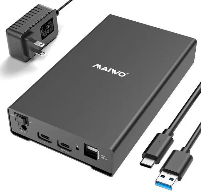 MAIWO External Hard Drive Enclosure for 2.5 3.5 inch SATA SSD HDD, USB 3.1 GEN2 Type-C to SATA Adapter, 10Gbps with UASP, 24TB Capacity, 3X USB Ports Extension, Fits 7/9.5/12.5/15mm Disk
