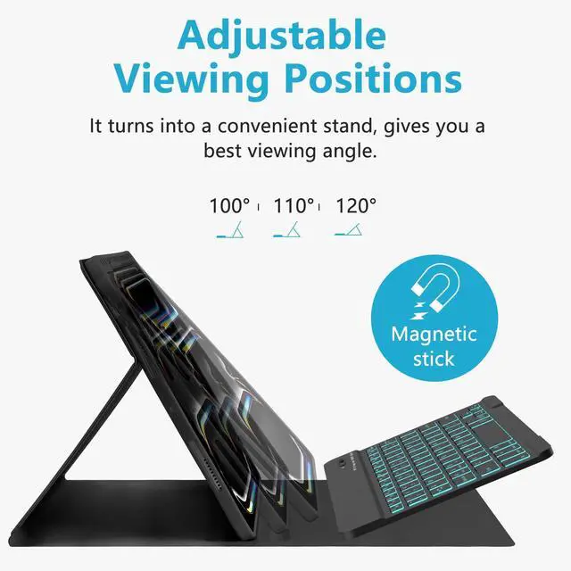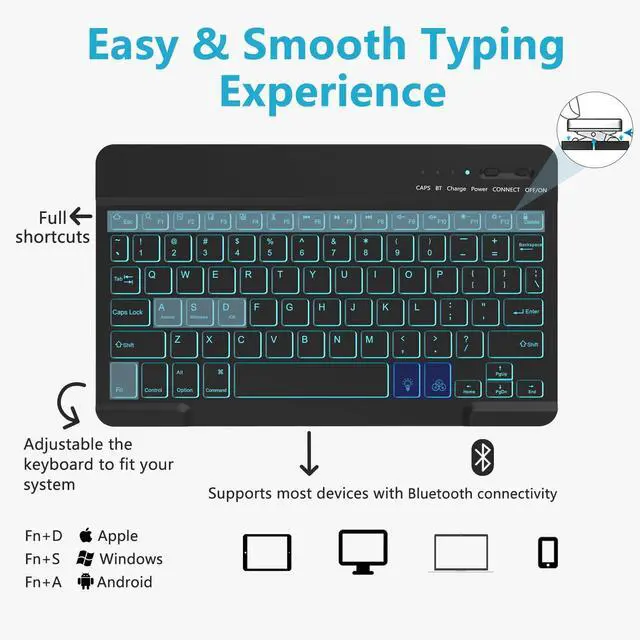 7 Colors Backlit Keyboard: It has 3 brightness modes and 7 color backlit options, making typing in low-light areas easy on the eyes. The for iPad keyboard case features a full row of shortcut keys for one-tap access to popular functions including volume and media controls, brightness levels, and more. Decades of MMK expertise ensure you a comfortable, quiet, and smooth typing experience, letting you work comfortably at any time of day.