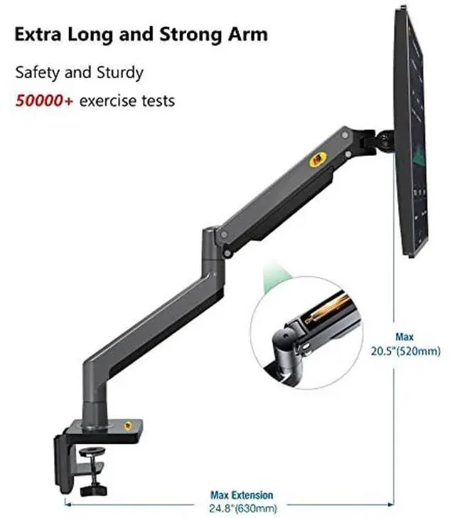 2 FULLY ADJUSTABLE: The durable gas spring system ensure easy positioning of your monitor in any desirable position; Personalize your workstation any way you want; Support C-clamp or Grommet installation; Heavy-duty construction and super quality materials keep your arm mount stable- This is the sturdiest desk mount on the market.