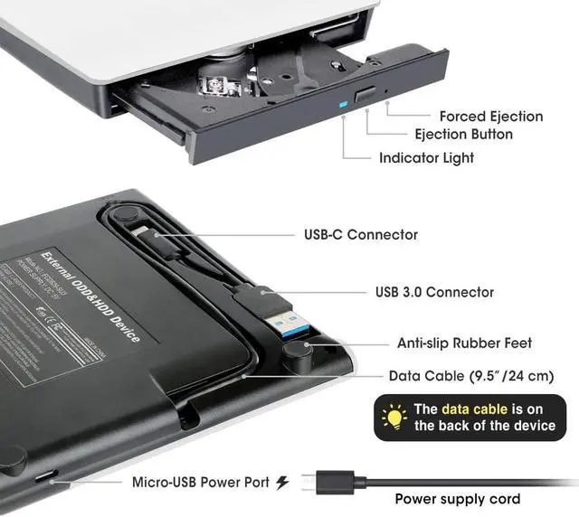 [(Best External CD/DVD Drive for Laptop and Mac)] No extra driver program is required, as easy as using an internal optical drive. Just plug this external CD/DVD RW drive into the USB-A or USB-C of your Mac or Windows computer, and insert your CDs or DVDs, it will be recognized automatically, you can then use a media player, burning, or ripping software to read, write, and copy your CDs and DVDs. Plug and play! [(Note)] For Mac computers, to eject a disc, please right-click on the icon on the desktop and select "eject", or choose "File" > "Eject" button.