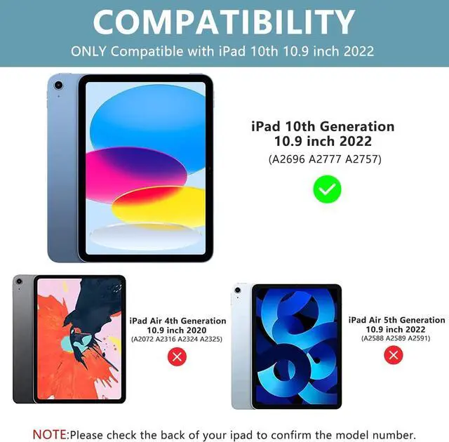 Compatibility Model:Specially designed for 10.9 inch of iPad 10th generation case with keyboard (Model Number: A2696/A2777/A2757).Please be kindly check your device back model before purchasing.Note: It is not compatible with iPad Air 5th/4th
