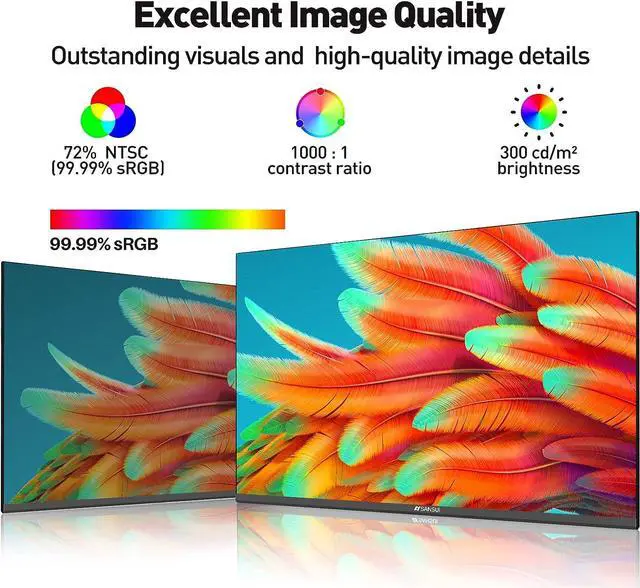 1000: 1 Contrast Ratio|250nits Brightness| 16.7M Display Colors| NTSC 72% Color Gamut|178° Wide Viewing Angle