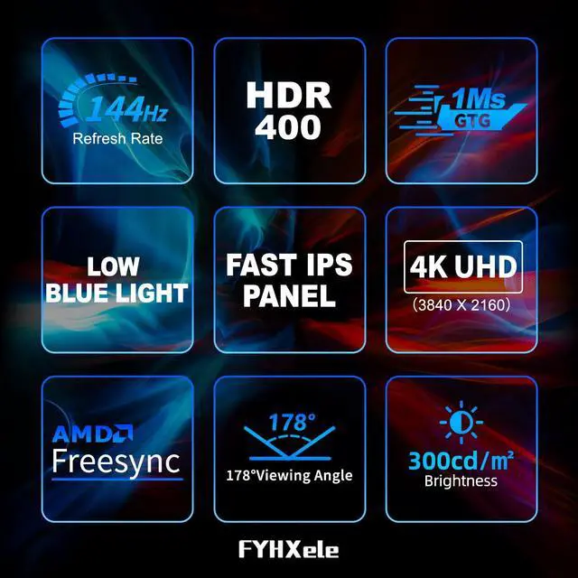 Ultimately Clear 4K UHD Monitor: FYHXele's New 32 inch gaming monitor has a UHD 3840*2160 resolution. The gaming monitor provides crystal clear visuals, captures more detailed gameplay footage, and makes gaming and movie entertainment more immersive.