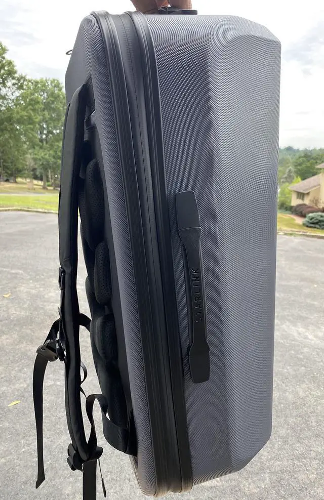 The Starlink team has developed the Starlink Travel Case to make transporting your rectangular Starlink kit easier wherever you go. Great for RV travel, vacations, and temporary portable use. Features include a hard shell case with zipper, backpack straps, and handles on the top and side. It fits all items in your Starlink Kit, including the router, base, and cables.