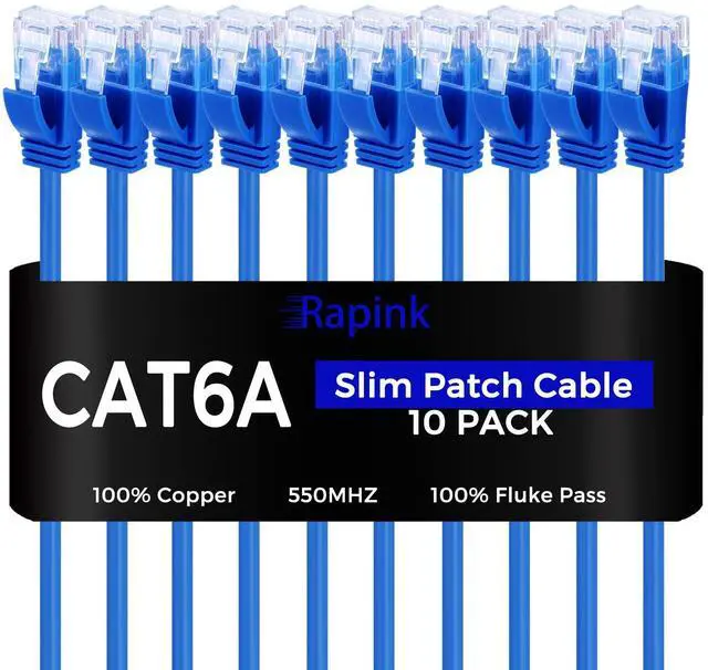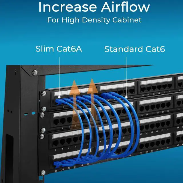 Save Space and TimeSlim cat6a patch cable is easier to route and saves valuable space in high density environments, such as data centers and telecommunications rooms. With thin ethernet cable, you can fit more cables in the same space, saving you the time and cost of expanding or replacing cable pathways. 10G speed via Gold plated pinsAll 8P8C of 30AWG pure copper cat 6a patch cable are golden plated to support better network connection up to 10G speed 550MHZ ethernet network. Upgrade and Clean Up RackGood size cat 6a ethernet cable for clean wire management install.