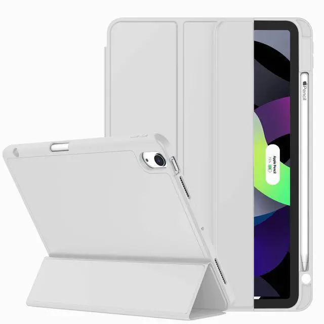 ZryXal iPad Air 11 Inch Case M3 2025 / M2 2024, iPad Air Case 5th Generation/4th Generation 2022/2020 10.9 Inch [Support Touch ID and Auto Wake/Sleep] (Light Gray)