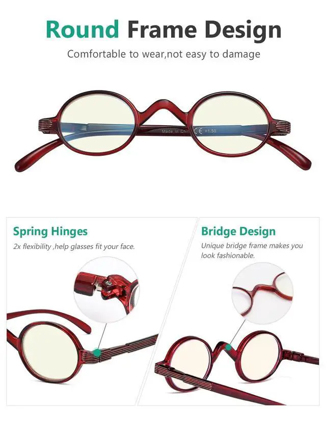 Eyekepper Blue Light Filter Glasses - Computer Reading Glasses - Small Round Blocking Readers Reading with Spring Hinges - Red + 0.75