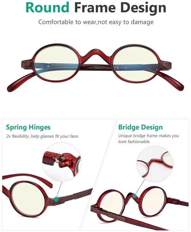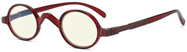Eyekepper Blue Light Filter Glasses - Computer Reading Glasses - Small Round Blocking Readers Reading with Spring Hinges - Red + 2.00