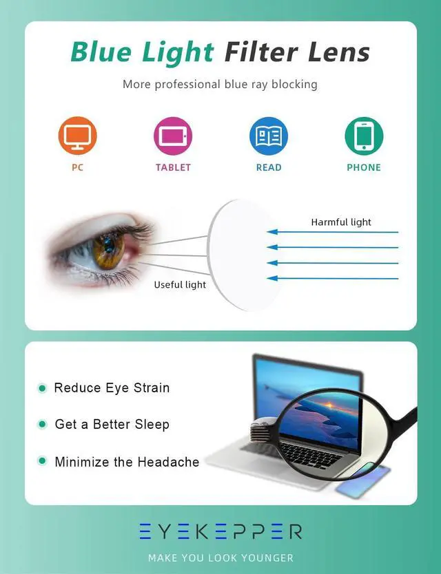 Test via the spectrometer(the performance of blue light blocking): block 29% within 500nm, block 32% within 490nm, block 33% within 480nm, block 35% within 470nm, block 36% within 460nm, block 37% within 450nm, block 39% within 440nm, block 51% within 430nm, block 93% within 420nm, block more than 99% within 400nm-410nm.