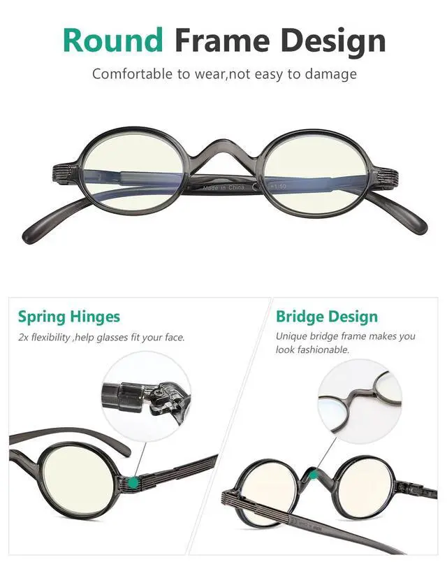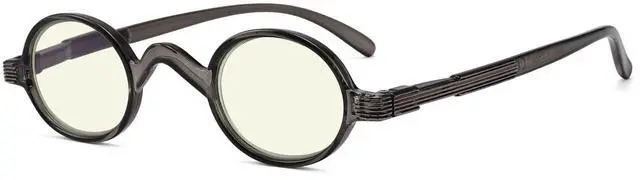 Eyekepper Blue Light Filter Glasses - Computer Reading Glasses - Small Round Blocking Readers Reading with Spring Hinges - Grey + 0.75