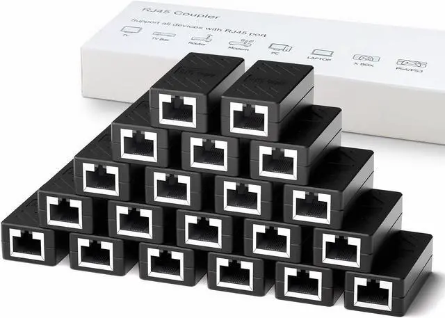 Dingsun RJ45 Coupler, Ethernet Extender for Cat7/Cat6/Cat5e/Cat5 Female to Female Ethernet Coupler Connector(20, Black)