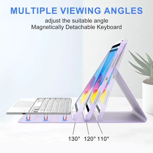 Magnetically Detachable Keyboard - For iPad 10th gen keyboard is magnetic and it can be strongly attached to the case or detach completely. When you do not need the keyboard can be stored away, easy to carry it on the go. It is easy, fast and stable to connect via BT, reconnect immediately turning it on.You c