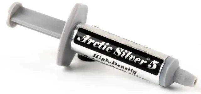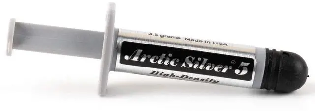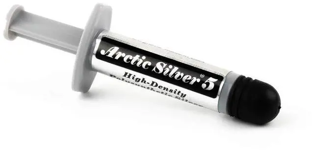 Arctic Silver 5 High-Density Polysynthetic Silver Thermal Compound 3.5 g AS5- 3.5G Arctic Silver 5 premium thermal compound, with 99.9 % pure micronized silver, is specifically designed to maximize the thermal conductivity between today's high-powered processors and high-performance cooling assemblies. Arctic Silver 5 uses three unique shapes and sizes of near-pure silver particles to maximize particle-to-particle contact area and thermal transfer. It can reduce CPU core temperatures by up to 50°F over standard silicone thermal pastes. Controlled triple phase viscosity allows Arctic Silver 5 to fill, over time, microscopic valleys and gaps in CPU and heatsink surfaces.