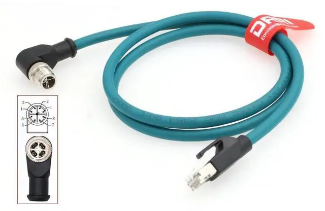 Connector B: Right angle M12 8pole X-Coded screw lock connector ^^ Overall foil and braid shielded provides EMI/RFI protection; PUR jacket resists oil and other contaminants ^^ The industrial Ethernet X-coded connectors are ideal for industrial network applications in harsh environments.