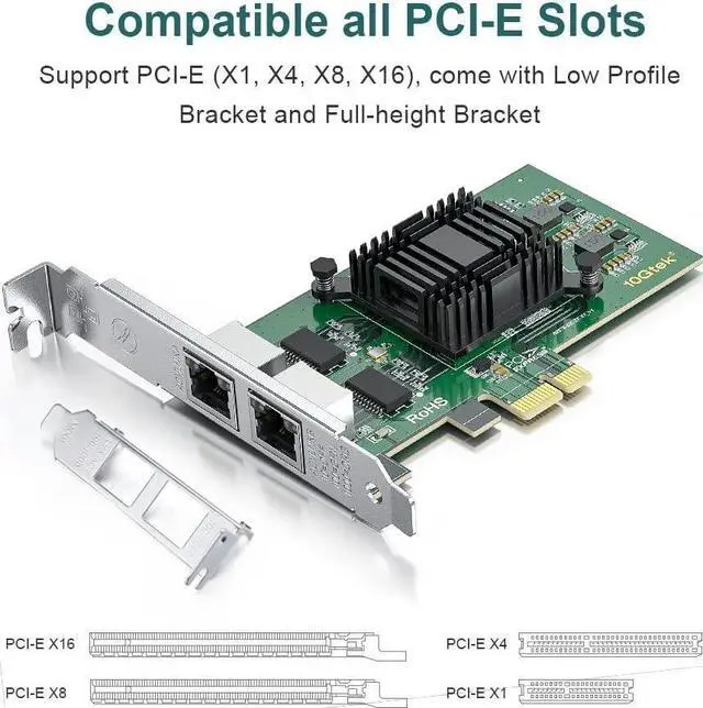 Compliant Standards: IEEE 802.3, IEEE 802.1Q, IEEE 802.1 p, IEEE 802.3 ad (LACP) Package content1 X Dual Port Giga LAN Adapter1 x Driver CD1 x Low profile Bracket