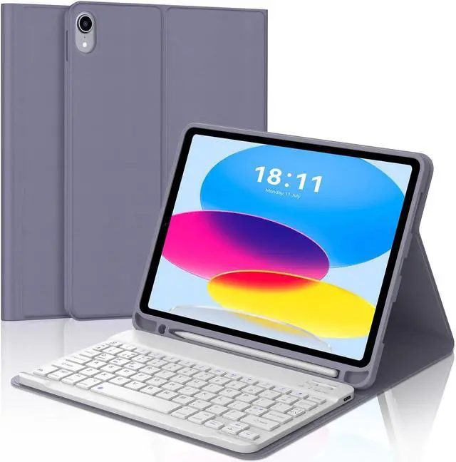 KVAGO for iPad (A16) 11th Generation Case with Keyboard, Smart Stand Folio Detachable Bluetooth Keyboard Cover with Pencil Holder for iPad 11-inch A16 2025 10th Gen 10.9 Inch 2022 (Lavender Purple)