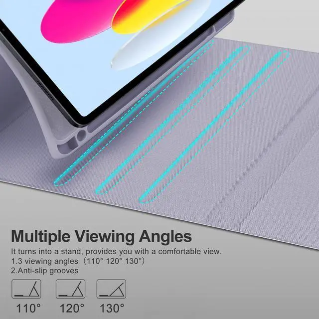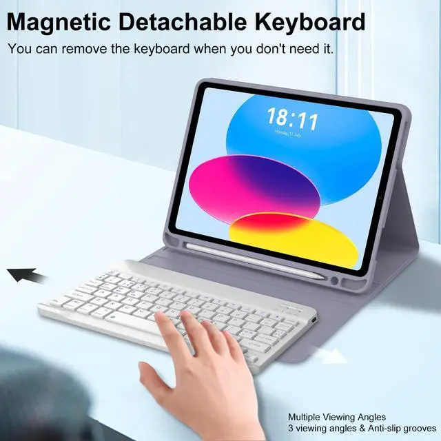 Multiple Viewing Angle: This 11th/ 10th gen iPad case with keyboard is designed with three anti-slip grooves, allowing you to adjust the screen to the perfect viewing angle. Whether you're working, typing, watching movies, or sketching, this case provides the flexibility you need