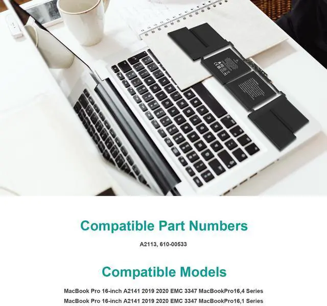 Compatible the Modelsfor A2113 laptop replacement battery made for MacBook Pro 16 inch A2141 2019 Year EMC 3347 BTO/CTO MVVJ2xx/A MVVK2xx/A MVVL2xx/A MVVM2xx/A