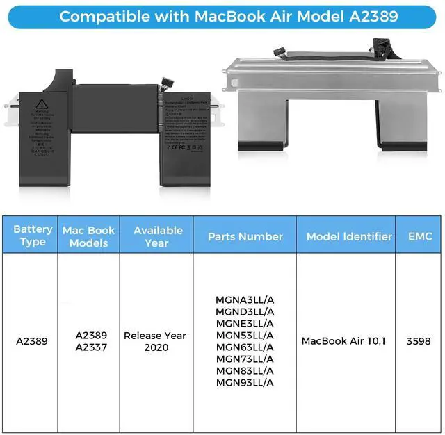 Compatible Laptop ModelsBattery type A2389,Replace for MacBook Air 13inch M1 Model A2337 2020 Released Versions