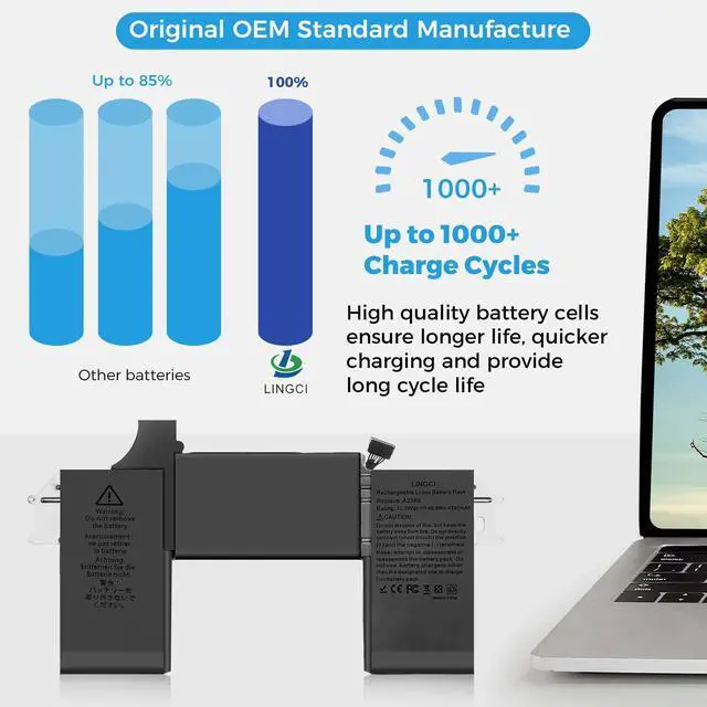 LINGCI A2389 A2337 Battery Replacement for MacBook Air 13 Inch A2337 M1 2020 EMC 3598 MGN53LL/A MGN83LL/A MGN63LL/A MGN93LL/A MGND3LL/A MGN73LL/A MGNA3LL/A MGNE3LL/A ( 11.39V 49.9W h 4380mAh)