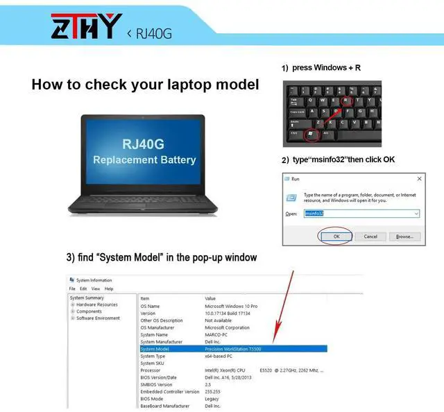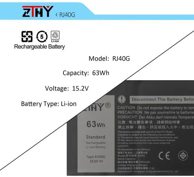 ZTHY RJ40G Battery Replacement for Dell Latitude 14 5420 Latitude 15 5520 Precision 15 3560 Series P137G P137G001 P104F P104F001 P104F002 075X16 01K2CF WY9DX 0WK3F1 0M3KCN 005R42 15.2V 63Wh 4Cell