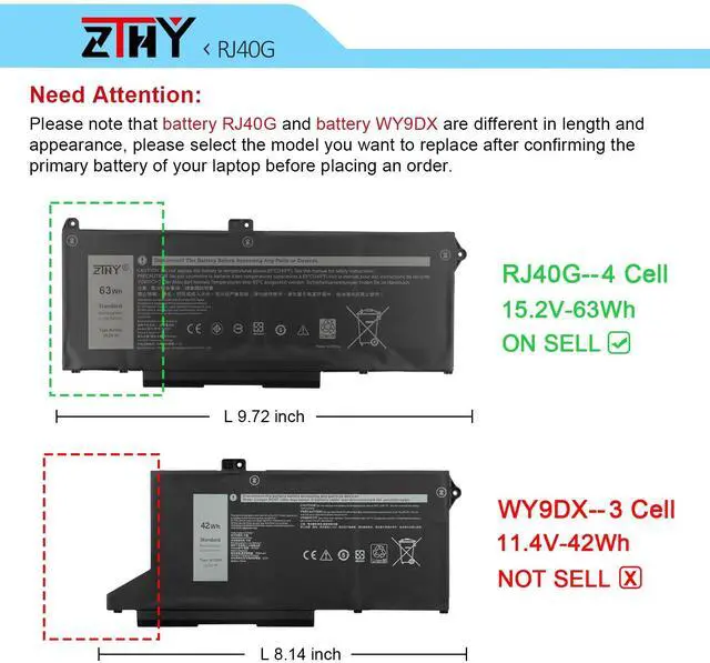Purchasing Note: There are 2 battery(RJ40G-63Wh and WY9DX-42Wh)of the Latitude 5420 5520 laptop,Please choose the which one you are going to replace and according to your laptop's original battery