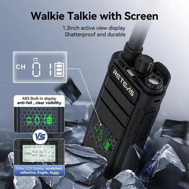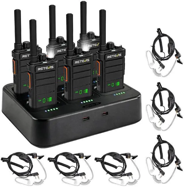 Long range walkie talkies communication radios; work walkie-talkies have greater power; connecting gmrs repeater can break long-distance geographical limitations; compared with consumer-grade two-way radios; RB26H GMRS radios have a longer talk distance; built for large retail stores; commercial campuses; and event operations that demand reliable long-range coverage ^^ 21-Hour Rechargeable Walkie Talkies with Six-Way Gang Charger; Powered by a 2000mAh high-capacity battery and USB-C charging for all-day indoor and outdoor use; the six-way charger simultaneously charges up to 6 radios or batteries with higher efficiency; keeps your desktop tidy; and features independent indicator lights for easy charging status checks; built for busy retail stores; fast-paced restaurants; and active school campuses; extending talk time and streamlining power management ^^ Rugged Walkie-Talkie with Hidden Drop-Proof Display; tested to survive 2-meter drops; the 1.3 -inch hidden LCD shows battery, channel, and function status clearly in any lighting; unlike standard screens; its built to resist cracks; glare; and fogging; perfect for hotel operations; campus security; event crews; and fast-paced retail environments where durability matters ^^ Strong compatibility and easy pairing; after canceling CTCSS/DCS; the RB26H can be compatible with more walkie-talkie models; it's a great helper for improving team collaboration efficiency; and supports quick pairing to enhance work productivity ^^ NOAA Emergency Radio with Weather Alert and Flashlight; receives NOAA weather alerts; warns of approaching severe weather in advance, and actively triggers alerts; built with a high-brightness LED flashlight for instant emergency illumination; designed for sports events; community celebrations; school outdoor activities; and helps event organizers respond quickly; ensure crowd safety; and keep events running smoothly when severe weather or sudden darkness strikes ^^ Walkie-Talkie Kit with Earpieces; K-Head 2-Pin; durable covert acoustic tube earpiece with 360 rotating clip and big PTT; coil tube design; with VOX function for hands-free operation; excellent for use in outdoor activities; police security; restaurants; retail; warehouses; and noisy environments ^^ Compared to consumer-grade license-free walkie-talkies; the RB26H offers higher power for extended range; operating on the GMRS band; it provides access to more channels; reduced interference; supports repeater connectivity to overcome geographical limitations; and features a rugged; durable build designed to withstand demanding environments