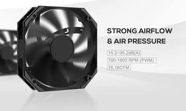 High-efficient FanThe 120mm PWM fan delivers improved pressure and air flow for extreme CPU cooling performance while generating low noise. Max.