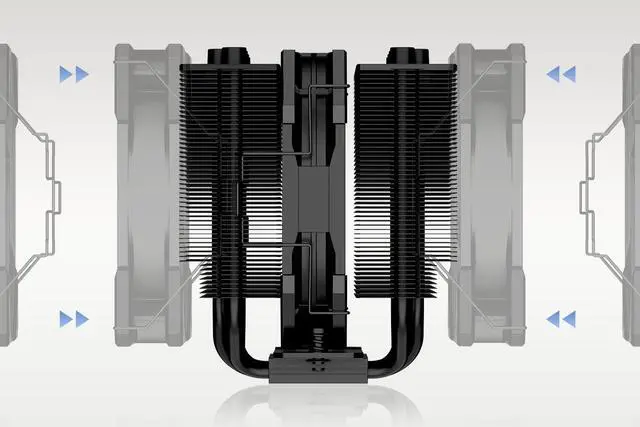 Better Heat DissipationThe Dual Tower CPU cooler comes with 7 heat pipes and a 120mm PWM fan to make sure excellent heat transfer from the CPU, two extra fans can be added to gain the most efficient cooling performance.
