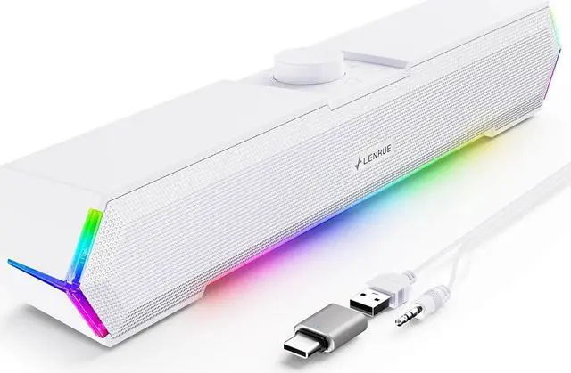 LENRUE G11 Computer Speakers for Desktop, Touch Lights PC Speakers with Surge Clear Sound, USB C/USB Powered for Computer Desktop PC Laptop Monitor (White)