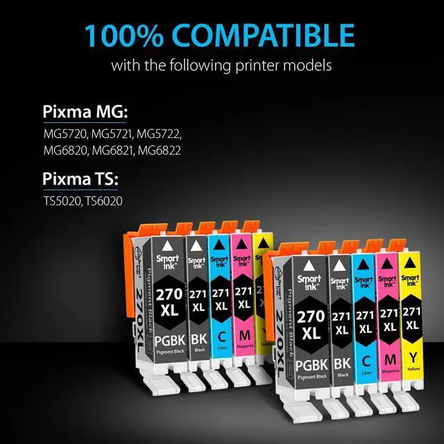Smart Ink Compatible Ink Cartridge Replacement for PGI 270 XL CLI 271 (2PGBK/BK/C/M/Y 10 Pack Combo) to use with MG5720 MG5721 MG5722 MG6820 MG6821 MG6822 TS5020 TS6020