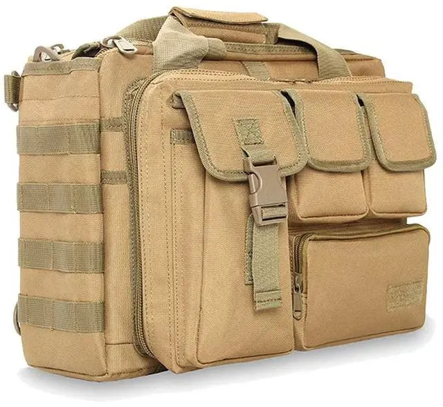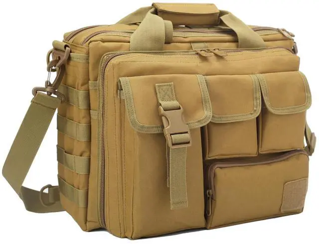 Tactical Briefcase, tactical computer bag 14.1" 15.6 In Men's Military Laptop Messenger Multifunction Briefcase for Men (Khaki- 15.6 Inch)