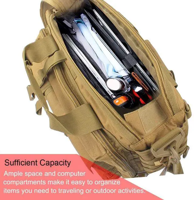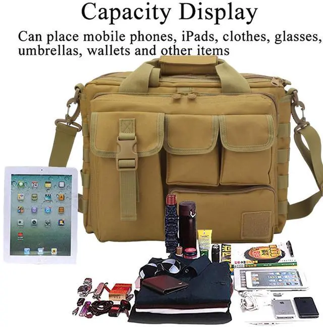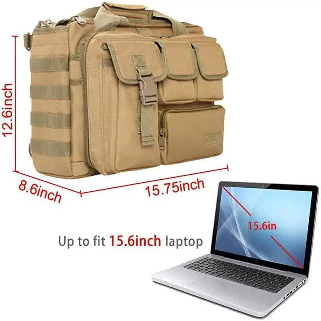 MULTIPLE COMPARTMENT: Laptop bag tactical can be accommodated 15.6-inch thin computerthe internal anti-collision isolation pad is a Velcro design.(Suitable for thin 15.6 thin laptop14" or below size prefer fitted.).Can be put into IPAD, mobile phone, mobile power, folder, etc.