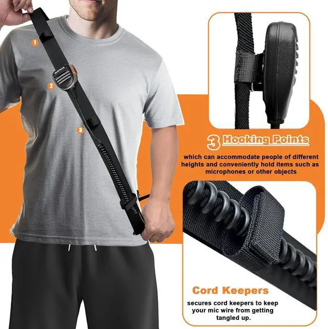 ^^ Radio strap adjustable length extra long to help cover your entire shoulder. slide its adjustable clip up to shorten the strap, or down for more slack. adjust from 36" to 65", which can be adjusted freely for your demand. The three loops on the top are used to secure the mic, and the bottom loop secures cord keepers to keep your mic wire from getting tangled up. ^^ Crafted from rugged, nylon material, this radio pouch is built to withstand the demands of harsh environments and intensive use. The reinforced stitching and durable construction provide maximum durability, ensuring that your radio is well-protected from impacts, moisture, and debris.