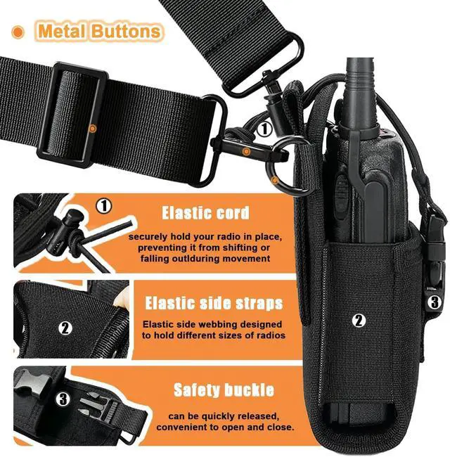 ^^ Whether you're on a tactical mission, conducting security operations, or exploring the great outdoors, our radio strap and holster provides the peace of mind knowing that your communication equipment is securely protected and readily accessible whenever you need it. Elevate your gear setup with this essential piece of pouch equipment today.