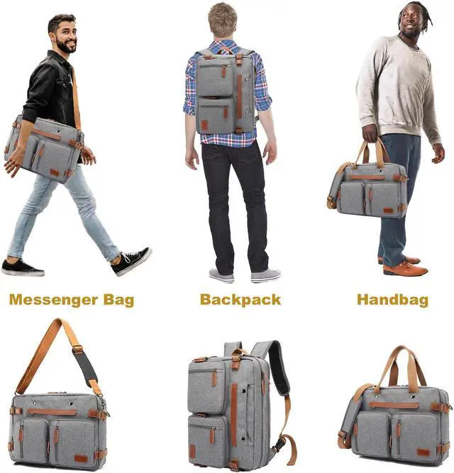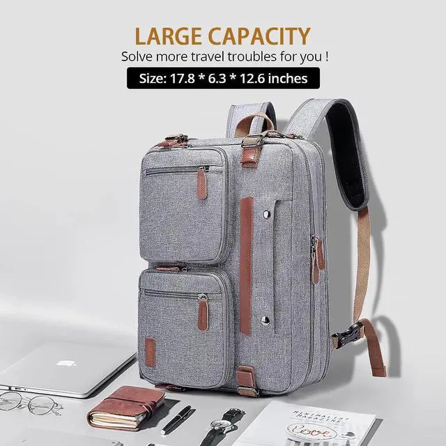 MOLNIA 3 in 1 Laptop Bag for Men, 17.3 inch Computer Bags for Men, Laptop Backpack, for Travel Business Work, Briefcases Messenger Bag for Men Women, Grey