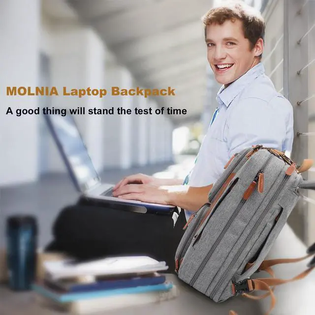 [(3 in 1 Laptop Backpack)] Not just a bag! Molnia laptop backpack can be used as a backpack, briefcase, messenger bag, which can meet your differents needs. The laptop backpack is suitable as large travel backpack and business backpack for men. Perfect for work/commuting/occasional international travel/airplane trips/hiking camping.