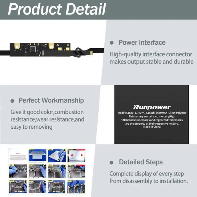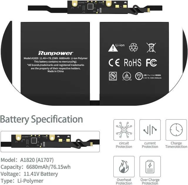 [(Powerful performance)] A1820 battery has been tested by strict quality standards, adopts fast charging and energy-saving design, and has built-in circuit protection, which is safe and stable. The A1707 battery is durable and has overcurrent protection, anti-overcharge, anti-overdischarge and temperature control functions.