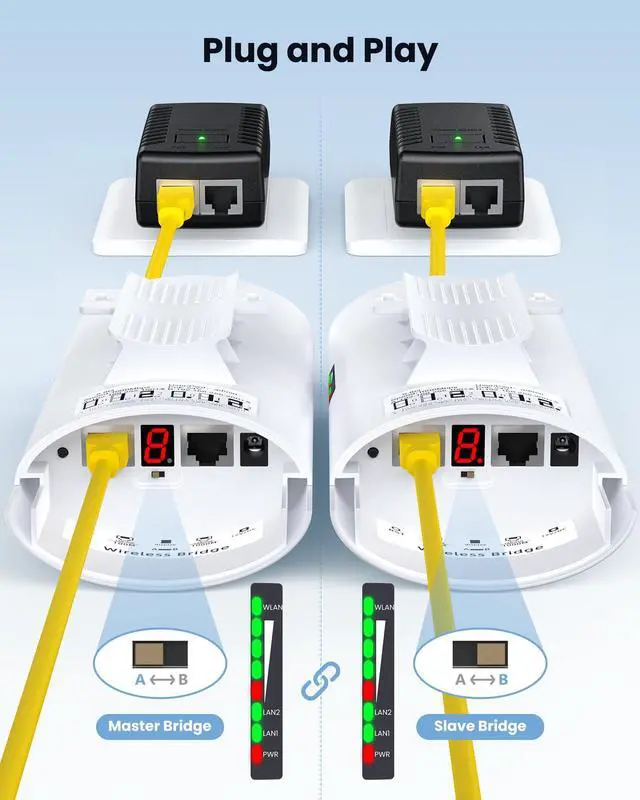 Hassle-Free Installation to Plug and Play: The WiFi Bridge offers a user-friendly plug-and-play installation, making network expansion simple and accessible. With AB automatic networking, without needing GUI access and technical hassles