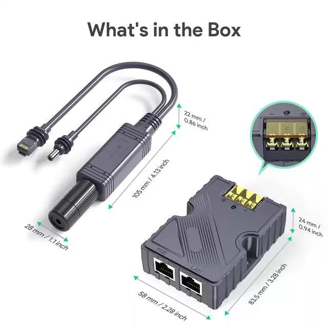 PoE Adapter & Splitter Combines power and data over a single Ethernet cable.