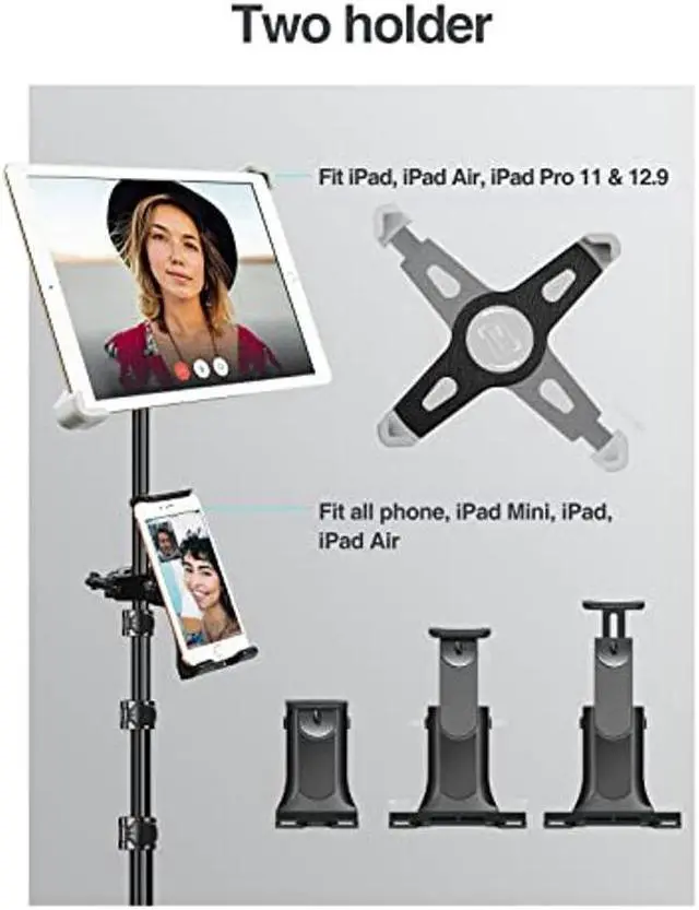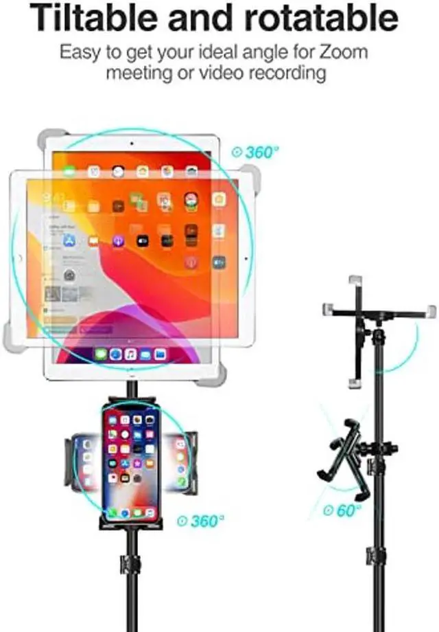 [(Two Holder for two devices)] Comes with two holders, one for phone and one for iPad, which is a great way to free up your hands and make you focus on what you are doing. When you use it for regular reading, watching, zoom meeting and playing music, you don't need to hold your iPad and have phone also within reach.