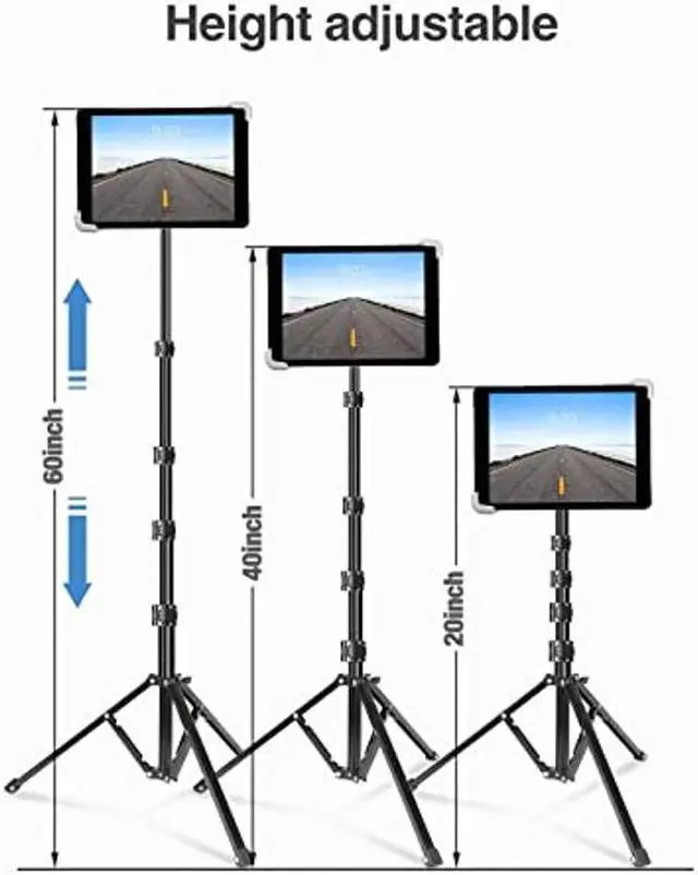 elitehood iPad Tripod Stand, 65-inch Height Adjustable iPad Stand Holder & iPad Floor Stand with 360deg Rotating iPad Tripod Mount for iPad, iPad Air, iPad Pro 12.9 11 and All 4- 14.5 Inch Tablets