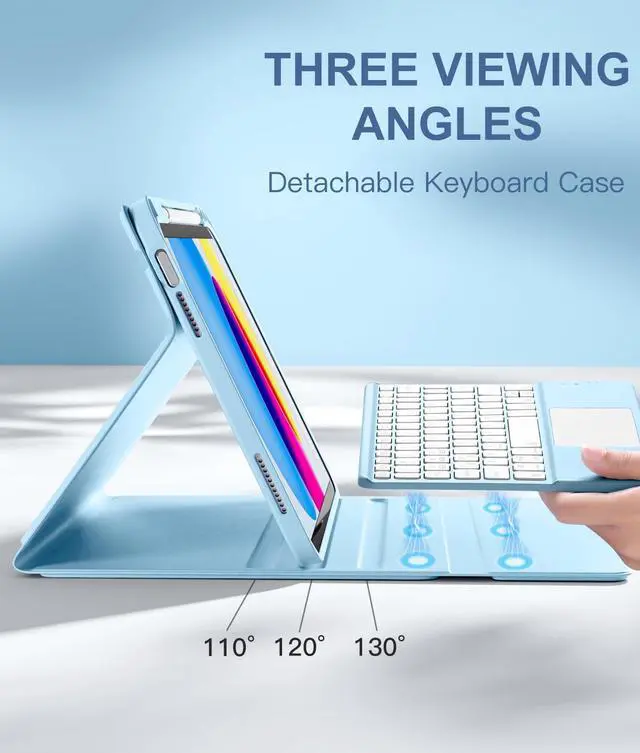 Harvopu Compatible for iPad 10th Generation Case with Keyboard ( 10.9", 2022), Keyboard Cover with Pencil Holder, Multi-Touch Trackpad, 7 Color Backlit, Detachable Keyboard for iPad 10 Gen (Sky Blue)