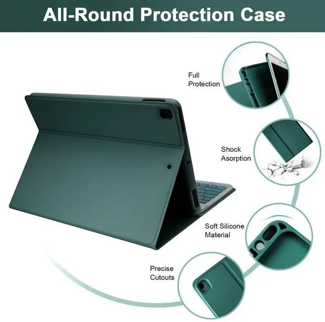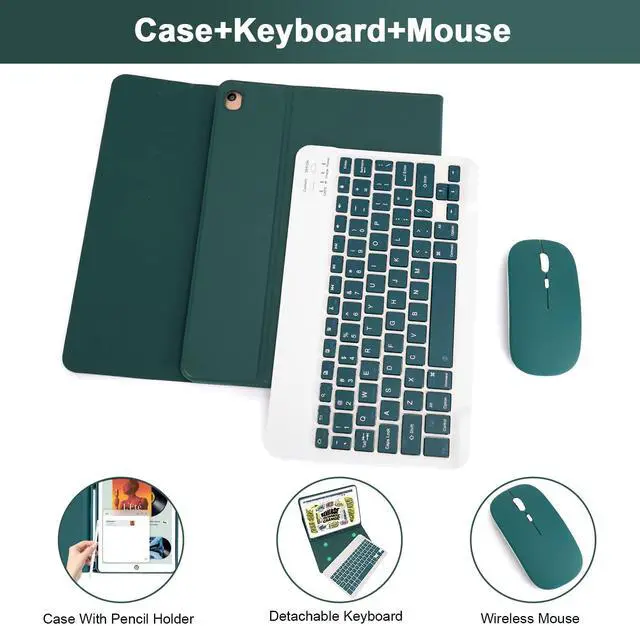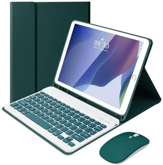 SOPPY Bluetooth Keyboard Case with Mouse for iPad 9th Gen 2021, 8th Gen 2020, 7th Gen 2019 10.2", Air 3 & Pro 10.5", Detachable Wireless Keyboard, Slim Protective Cover, Rechargeable, Dark Green