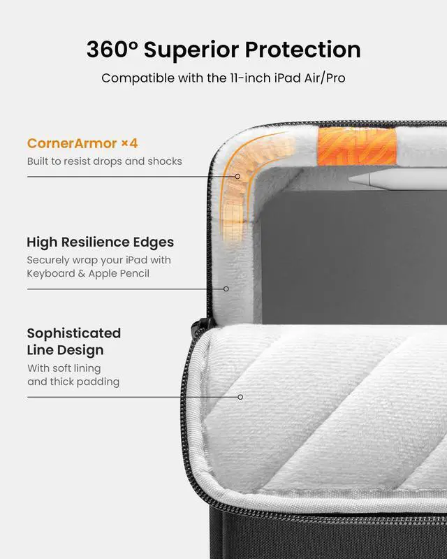 tomtoc 360 Protective Tablet Sleeve for iPad Pro 11-inch (M4/4th/3rd/2nd/1st Gen), iPad Air 11-inch (M3/M2) 2025 with Magic Keyboard/Smart Keyboard Folio, iPad (A16) 11-in, Water-Resistant Tablet Case